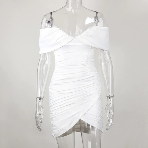 Hailey Bieber Inspired Off The Shoulder Ruched Mini Short Etsy Hong Kong